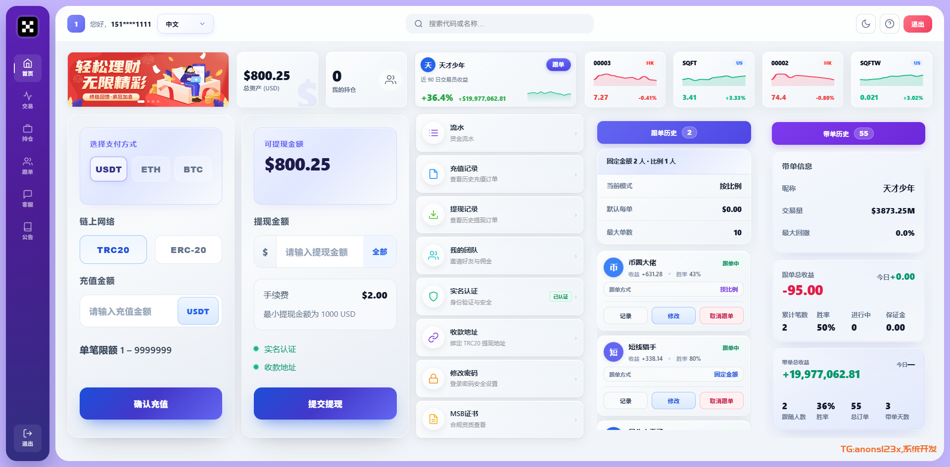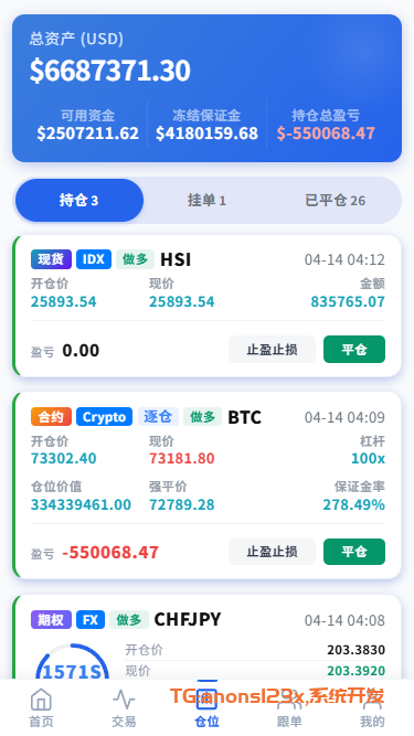 高端全品类交易系统源码跟单 加密 股票 外汇 期货 指数 多语言综合交易系统源码