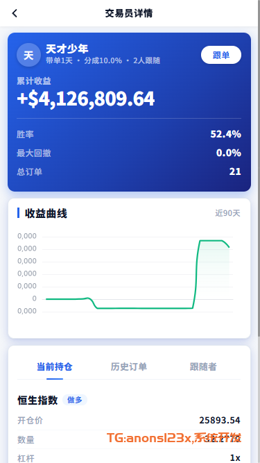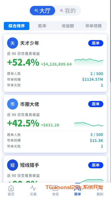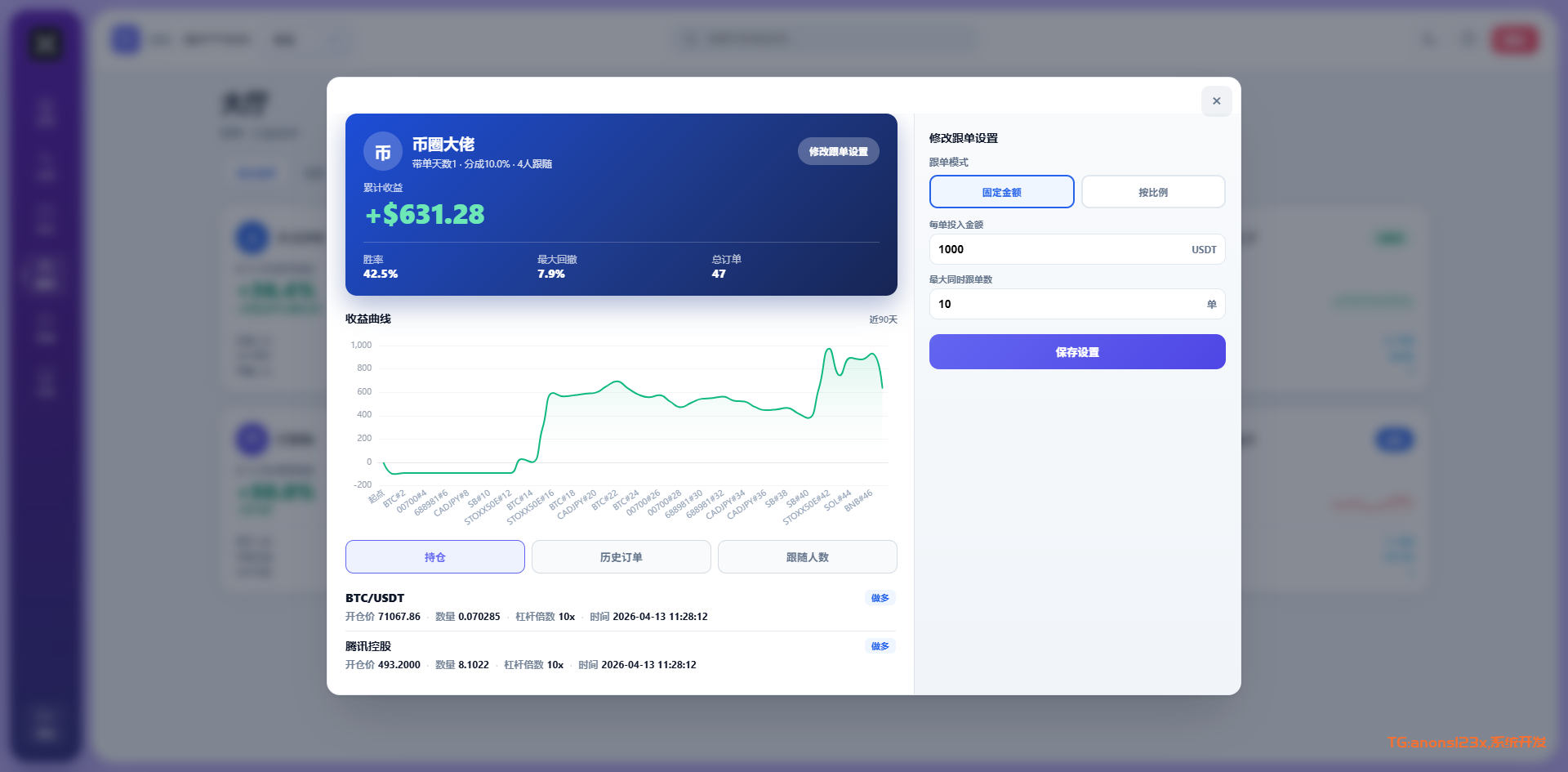 - 智能跟单 — 一键跟随明星交易员,自动复制开仓平仓,实时同步盈亏
