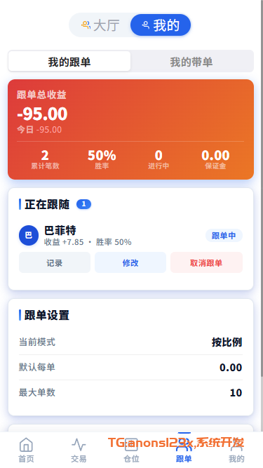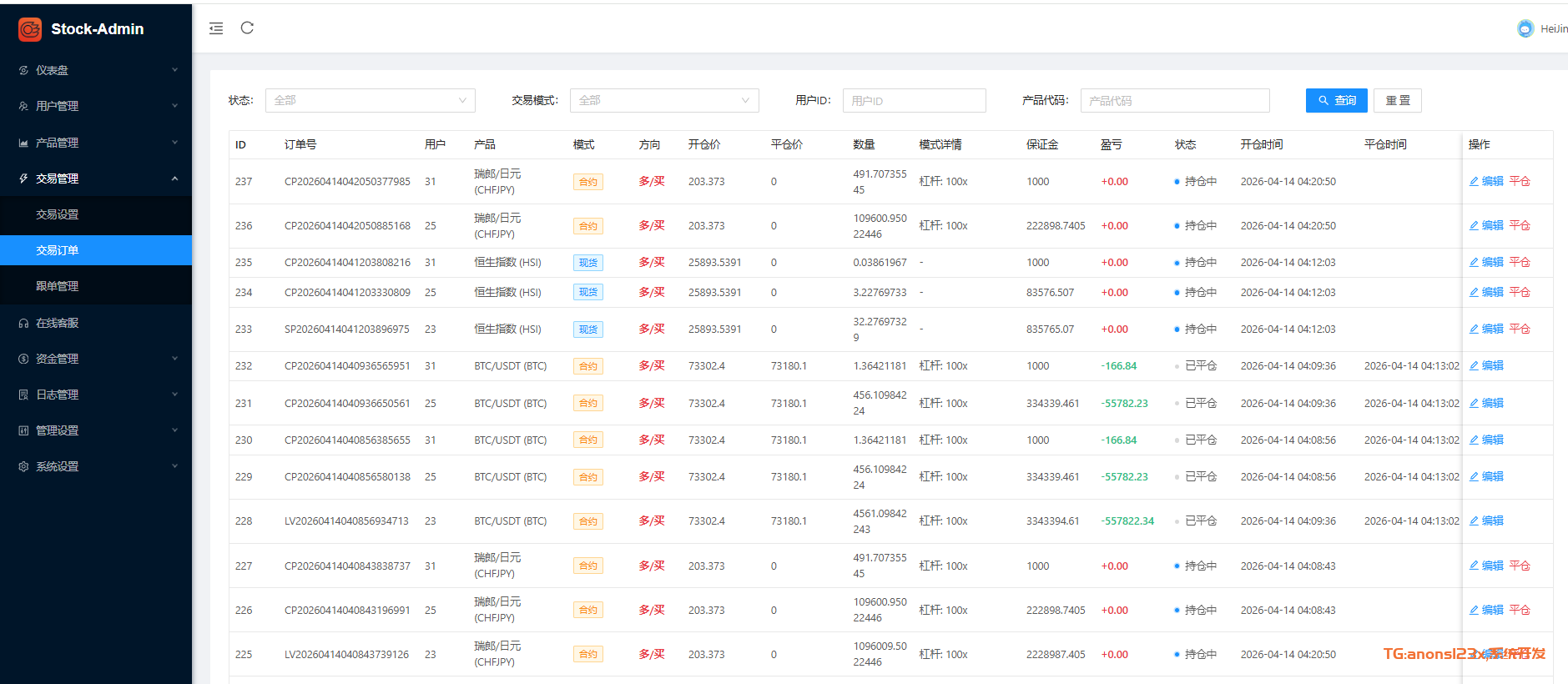 - 交易管理 — 订单监控、强制平仓、交易参数配置、跟单交易员审核