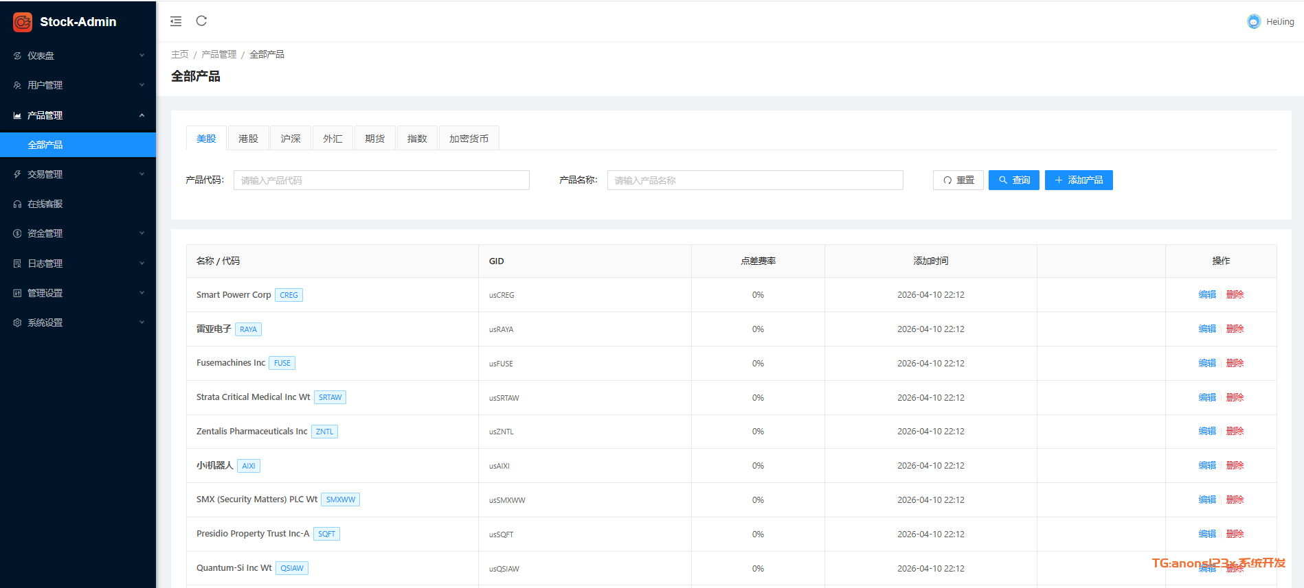- 产品管理 — 股票、棋货、加密货币标的统一管理